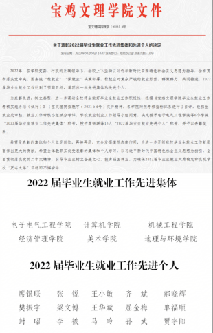 近日,学校下发了《关于表彰2022届毕业生就业工作先进集体和先进个人的决定》的文件,学院荣获学校“2022届毕业生就业工作先进集体”称号,席银联荣获“2022届毕业生就业先进个人”称号。