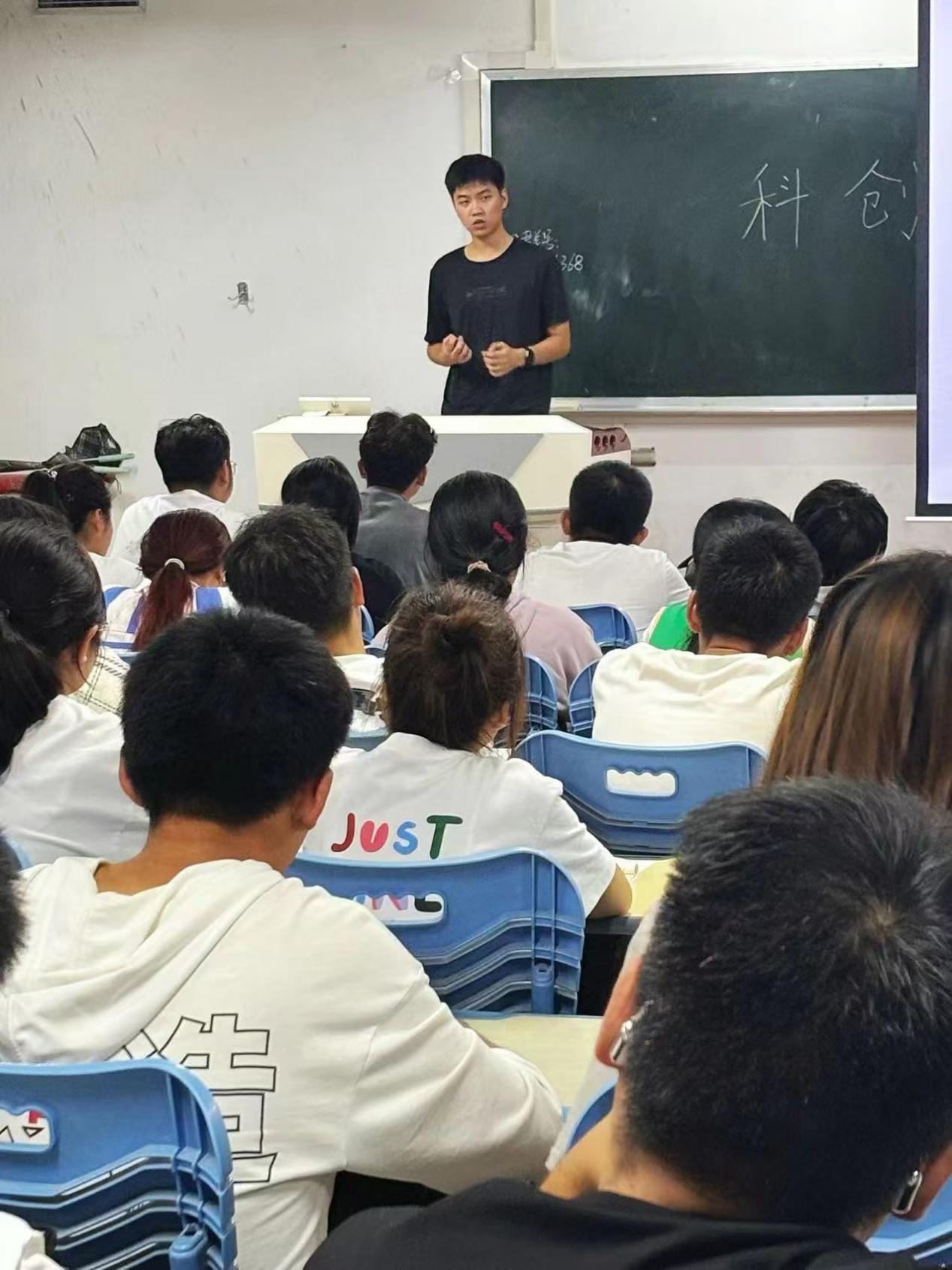 为了更好的帮助大一新生尽快的适应大学的学习环境,9月25日晚,由24级人工智能1班、2班的两位班主任朱丽叶、樊攀老师联合发起,为两个班新生成功举办了一场以“科创引领,学业并进”为主题的优秀科创人物经验分享会。该会旨在激发员工对科技创新的热情,并通过优秀学长学姐的亲身经历,为同学们提供宝贵的学习与成长经验。会议由2024级人工智能1班科创委员高宇妍同学主持。