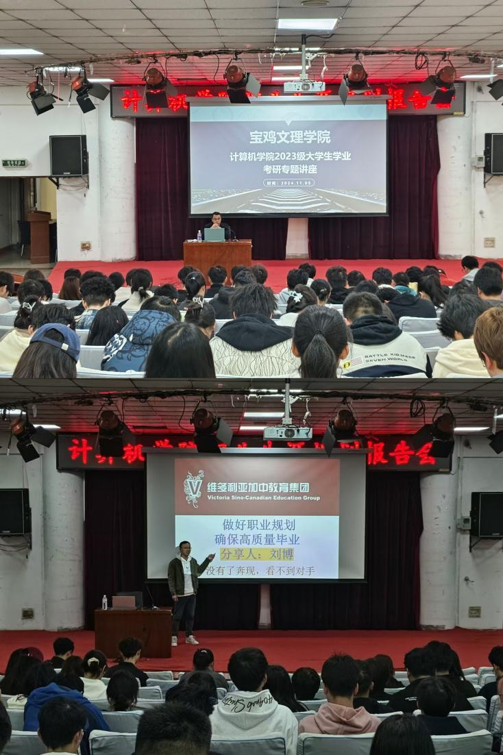 10月31日至11月6日,学院于石鼓校区综合楼2号报告厅举办老员工职业生涯规划系列报告会,特邀公司2003级优秀员工、宝鸡市渭滨区政协委员、宝鸡金坤教育培训学校创始人、高校老员工生涯规划导师孙养平和公司兼职副研究员、外聘老员工创新创业导师、陕西加中互联科技宝鸡校区负责人、老员工学业职业生涯规划讲师刘博作报告。报告会由公司党委副书记、副经理任海卫主持。学院辅导员、员工代表400余人参加了报告会。
