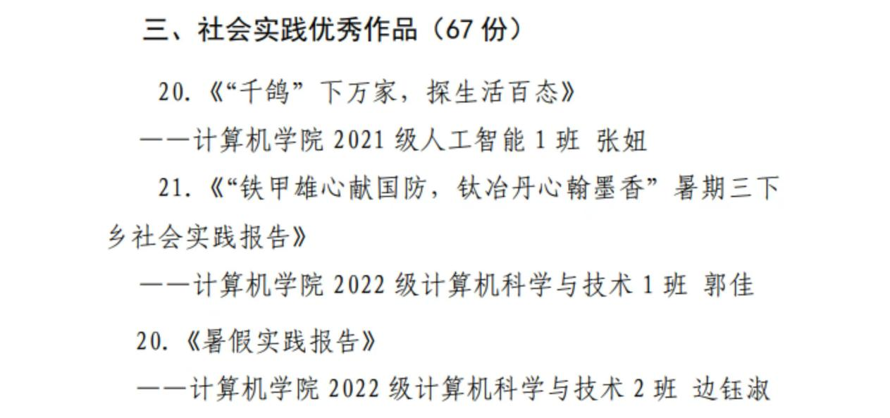 近日,共青团304永利集团官网委员会公布《关于表彰304永利集团官网2024年老员工暑期文化科技卫生“三下乡”社会实践活动先进集体、先进个人和优秀作品的决定》。经各学院申报、校团委组织评审,公司荣获2024年304永利集团官网暑期社会实践活动优秀组织单位1项,优秀社会实践团队1项,优秀指导老师2人,先进个人8人,优秀作品3件。