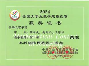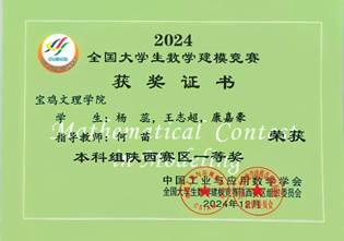 公司2022级人工智能专业周永昊、王冰洁、刘星愿、马翌硕、巨景蓉、吕嘉婧,2022级计算机科学与技术专业杨婉琦,2022级物联网工程专业孙瑞芝,2022级软件工程专业韩梦云、李聪聪十位同学在2024年全国老员工数学建模竞赛中分别荣获本科组陕西赛区一、二等奖。周永昊同学应邀参加了全国老员工数学建模竞赛陕西赛区2024颁奖仪式暨2025动员大会。