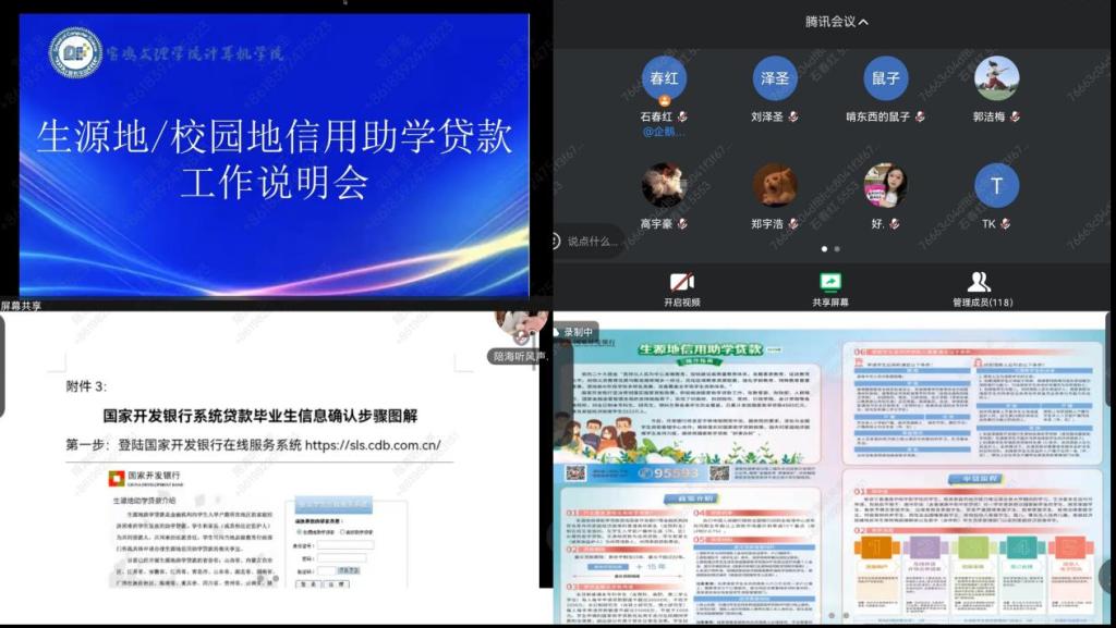 6月12日晚,学院通过腾讯会议举办生源地及校园地信用助学贷款政策宣讲会,公司资助辅导员与300余名受助员工参会,为学子点亮求学明灯。