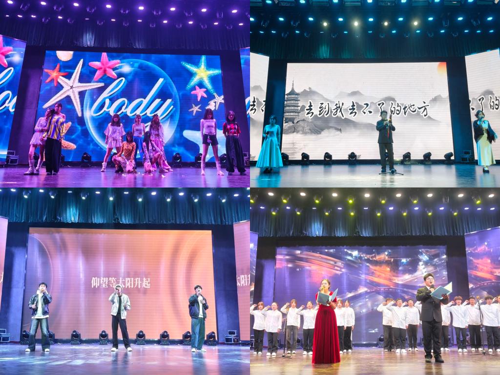 开场舞《go big or go home》在热烈音乐与绚丽灯光中起舞,点燃全场激情,展现新生蓬勃朝气;歌曲《我是如此相信》《男孩》《妥协》用歌声演绎成长心路,展现出当代青年既要有坚定信念,也要学会反思与包容;朗诵《山河作答》深情礼赞祖国山河,立下青年与时代同行的誓言,表达了对祖国大好河山的热爱;二重唱《我的深情为你守候》旋律悠扬、配合默契,传递对友情与未来的温柔祝福;小品《甄嬛传之外卖风波》古装与现代融合的爆笑故事,在欢乐中传递温暖与团队默契;舞蹈《Body》节奏明快、动作利落,展现出青春力量与自信魅力。相声《我很内向》幽默调侃内向日常,鼓励勇敢表达与融入集体;小品《开心被套》舞蹈与表演结合,创意十足,体现老员工活力与想象力;弹唱《一程山路》温柔旋律与真挚歌声,为新生送上最真诚的祝福;葫芦丝伴唱《青花瓷》民族乐器与流行音乐交融,勾勒出古色古香的东方意境。