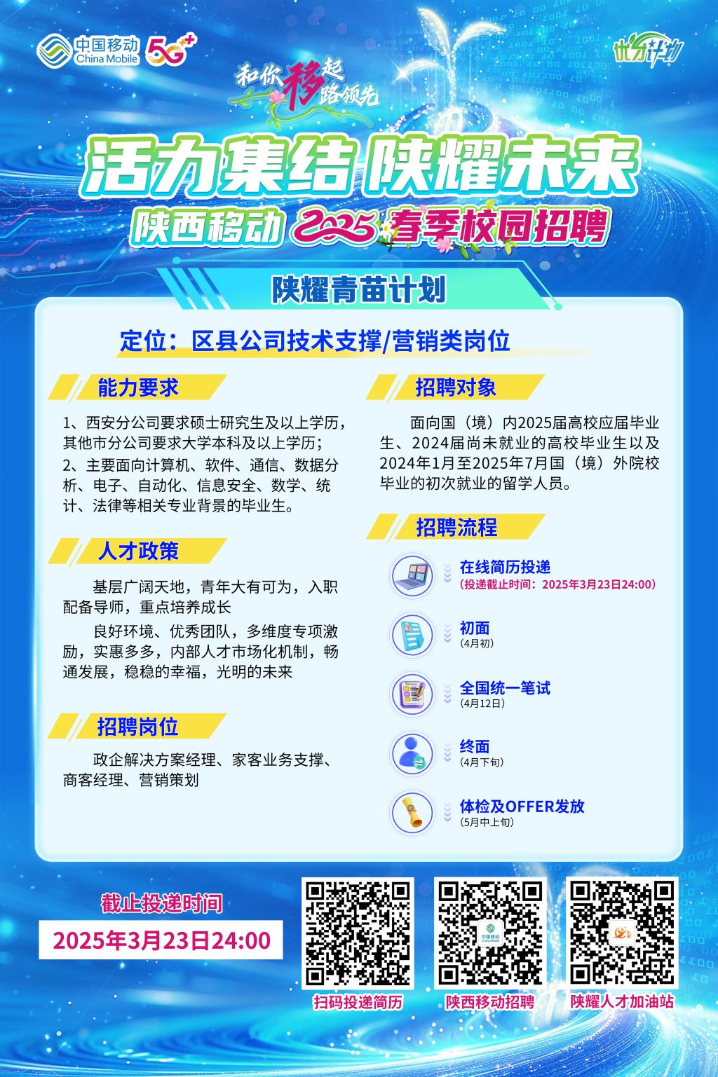 活力集结,陕耀未来 陕西移动2025春季校园招聘