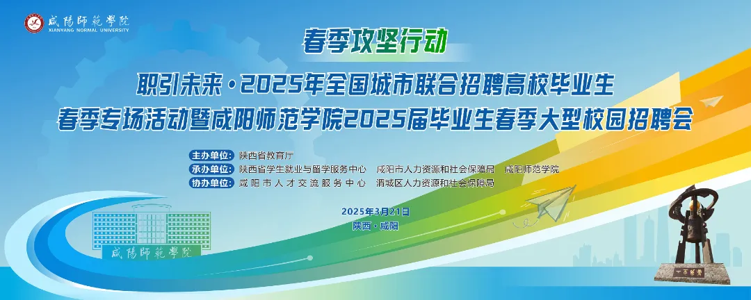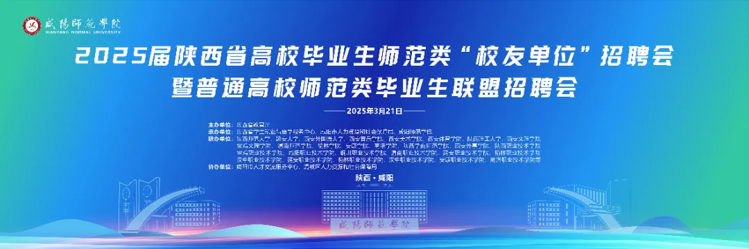 为构筑优质用人单位与精英学子高效互动桥梁,拓宽卓越职业发展路径,紧抓春招黄金时机,确保2025届毕业生高质量就业,2025届陕西省高校毕业生师范类“员工单位”招聘会暨普通高校师范类毕业生联盟招聘会定于2025年3月21日(星期五)在咸阳师范学院渭城校区“鼎成天下”广场(陕西省咸阳市渭城区文林路1号)盛大启幕。届时,各大知名企业将携海量岗位与各高校的杰出毕业生共聚一堂,精准匹配,共筑未来。